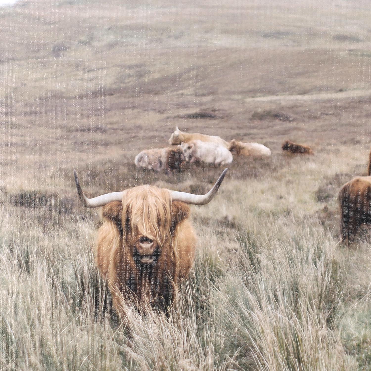 Decorate your home with this lovely Herd Wall Art print depicting shaggy highland cows, or "hairy coos" as they are known locally, relaxing in the rolling hills. This wall art exudes natural beauty and serenity in color and composition. The gentle color palette goes with a variety of styles, such as rustic, farmhouse and eclectic. It's an ideal addition that enhances your living room, guest room or home office. Hanging this print in your home puts the finishing touch on your décor and is sure to get people talking. Who can resist the beautiful colors and calming nature of this print?