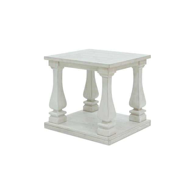 Elevating the art of casual traditional styling, this end table is your heavenly home accent realized. Oversized and indulgent, this beautiful piece wows with a wide plank design and square-shaped baluster legs, leaving you absorbed in its charisma.