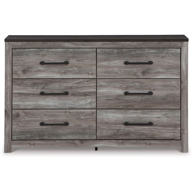 Alluring smoky gray hues create an ambiance that just feels right. This 6-drawer dresser has a charming wood-like appeal enriched by a two-tone, textured look. Light neutral shades contrasted by a dark charcoal finish bring a refined yet relaxed feel to contemporary decor and a sense of serenity to your space.