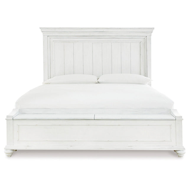 Give your retreat vintage charm with this queen panel bed and storage footboard. In a beautifully distressed white-washed finish, you'll love the headboard's grand style featuring a picture framed panel. The bench footboard is equally elegant offering extra storage and a convenient seat. Generously scaled moulding from top to bottom, along with bun feet give this bed character—invoking the feel of a quaint cottage escape.  - Product Details provided by Manufacturer, Slumberland not responsible for errors in information.