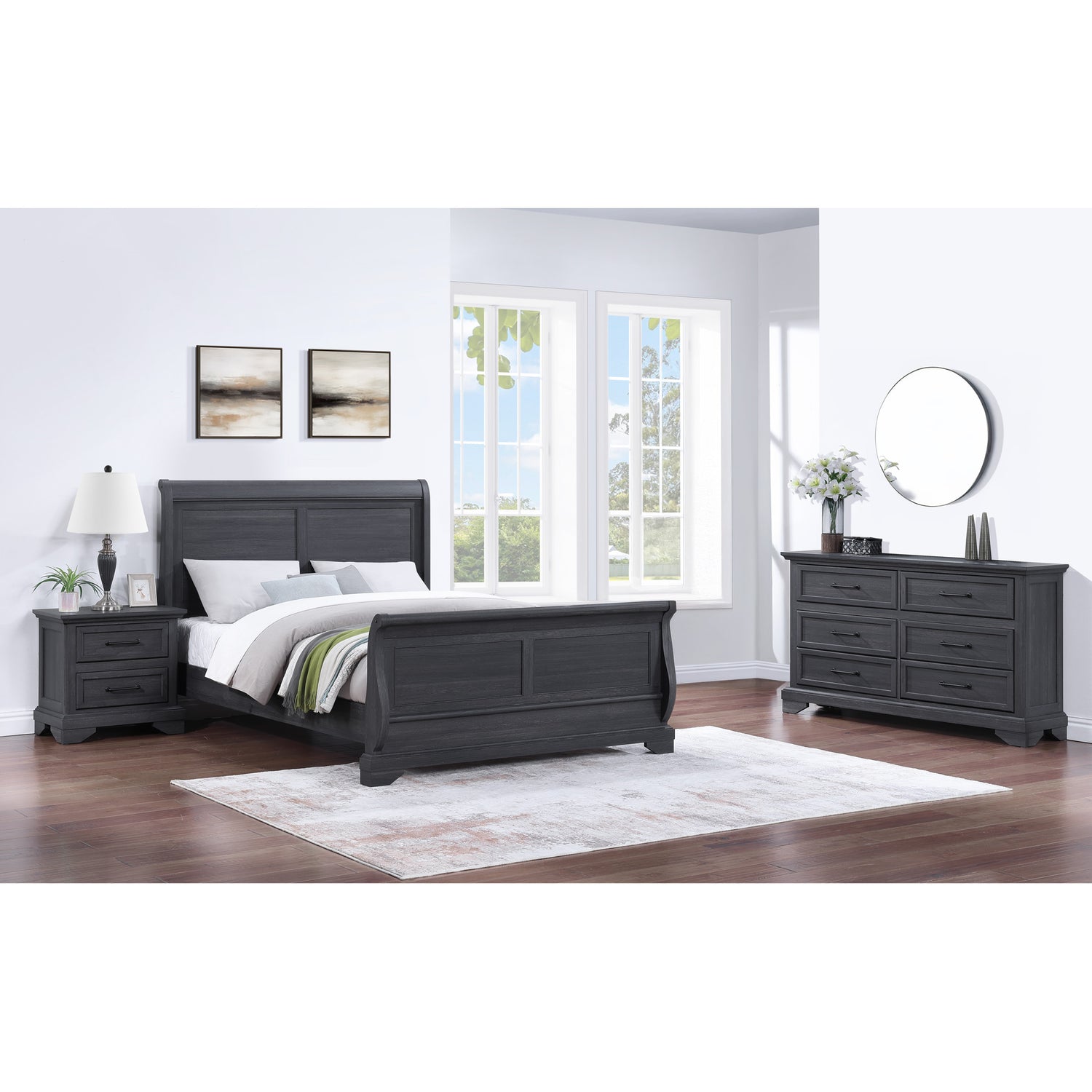 Timeless elegance meets modern durability in this beautifully crafted bedroom set, designed as a contemporary interpretation of the classic Louis Philippe style. Featuring smooth lines, graceful curves, and a rich wood-grain finish, this set offers a sophisticated look at an exceptional value. - Product Details provided by Manufacturer, Slumberland not responsible for errors in information.