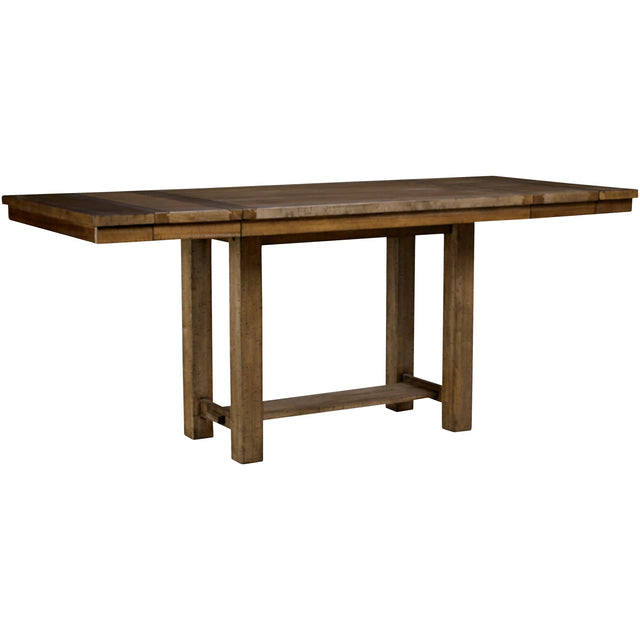 This Counter Height (34"-36") dining table might be simple at first sight, but a closer look reveals beauty in the details. From the through-tenon pedestal base to the plank-effect table top and distressed nutmeg finish, this table is beaming with tangible charm. Small scale, it's especially suited to an urban lifestyle, but two optional leaves ensure plenty of space for parties up to eight.