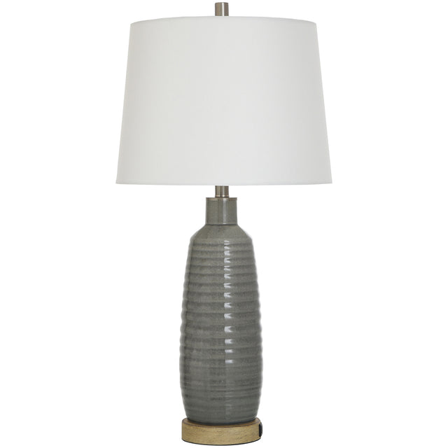 The Henri Table Lamp is the perfect combination of style and function. The sculptural ceramic body of the lamp is a modern art piece. The fabric drum shade creates a soft, warm glow that fills any space, whether that's your bedroom, living room, or workspace. The USB-A and USB-C ports in the base of the lamp let you charge your devices where you need them the most.