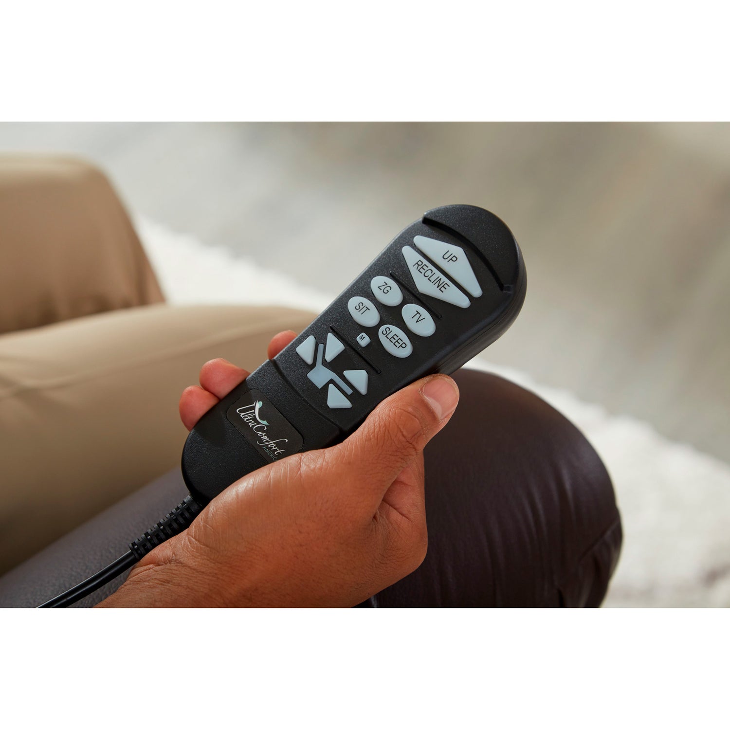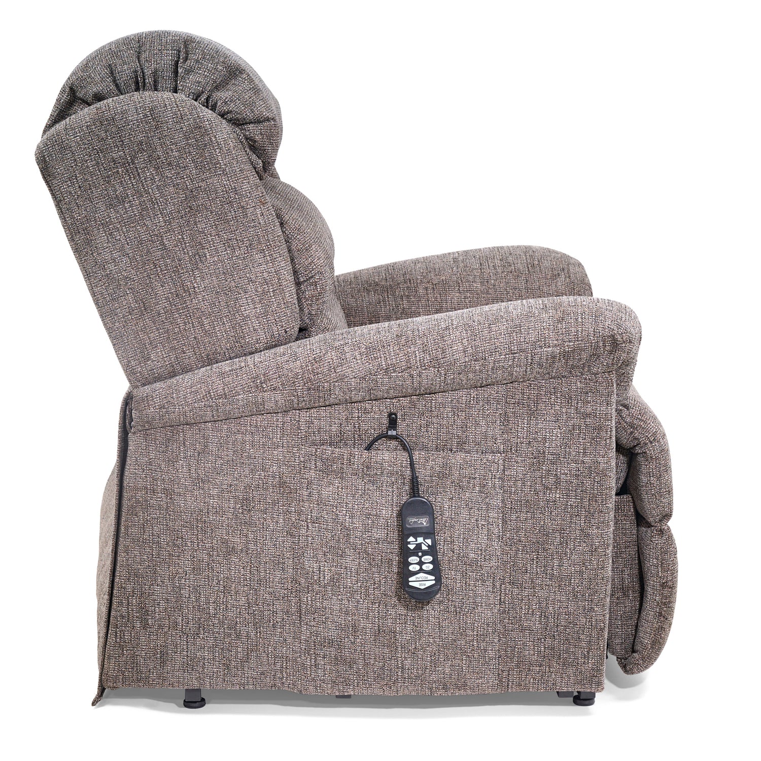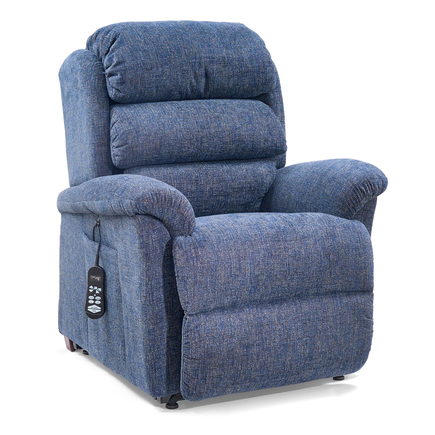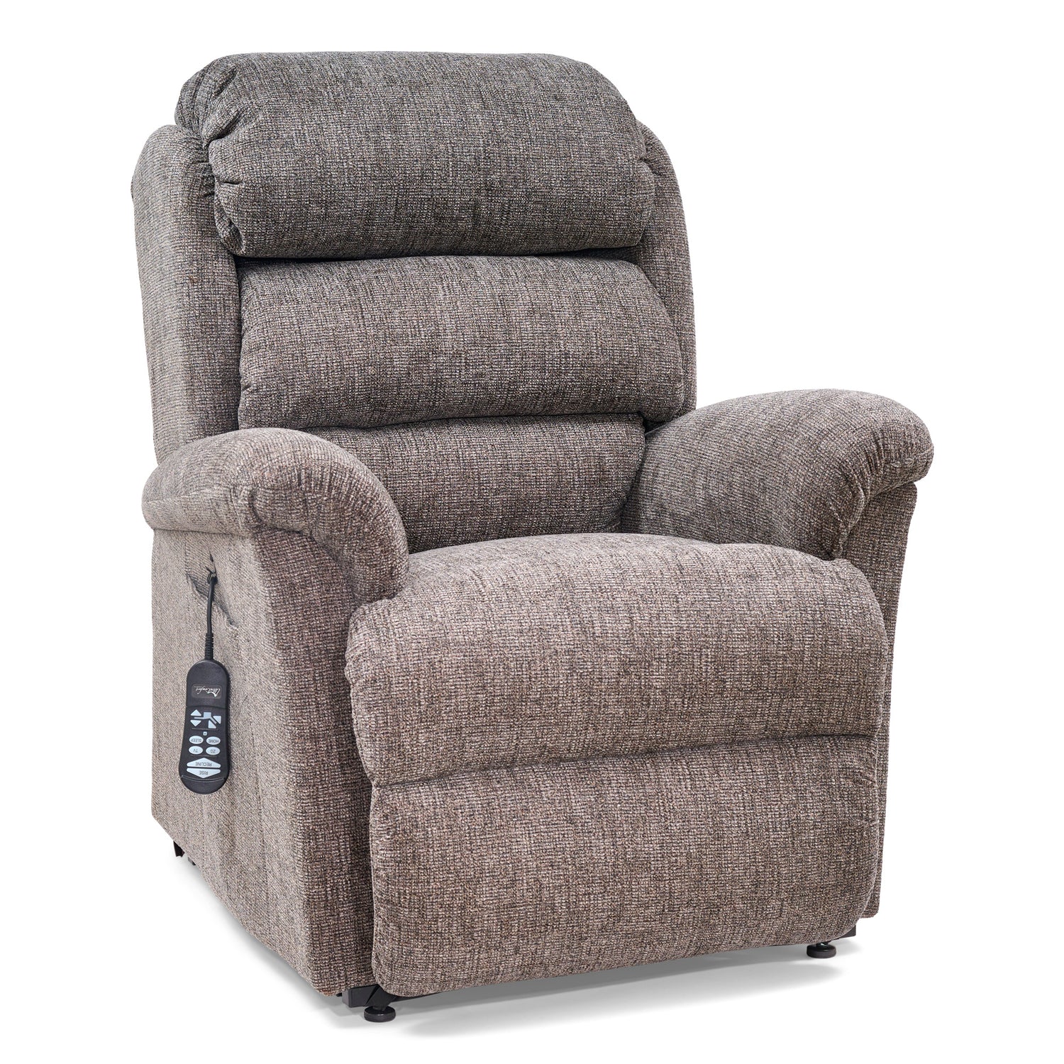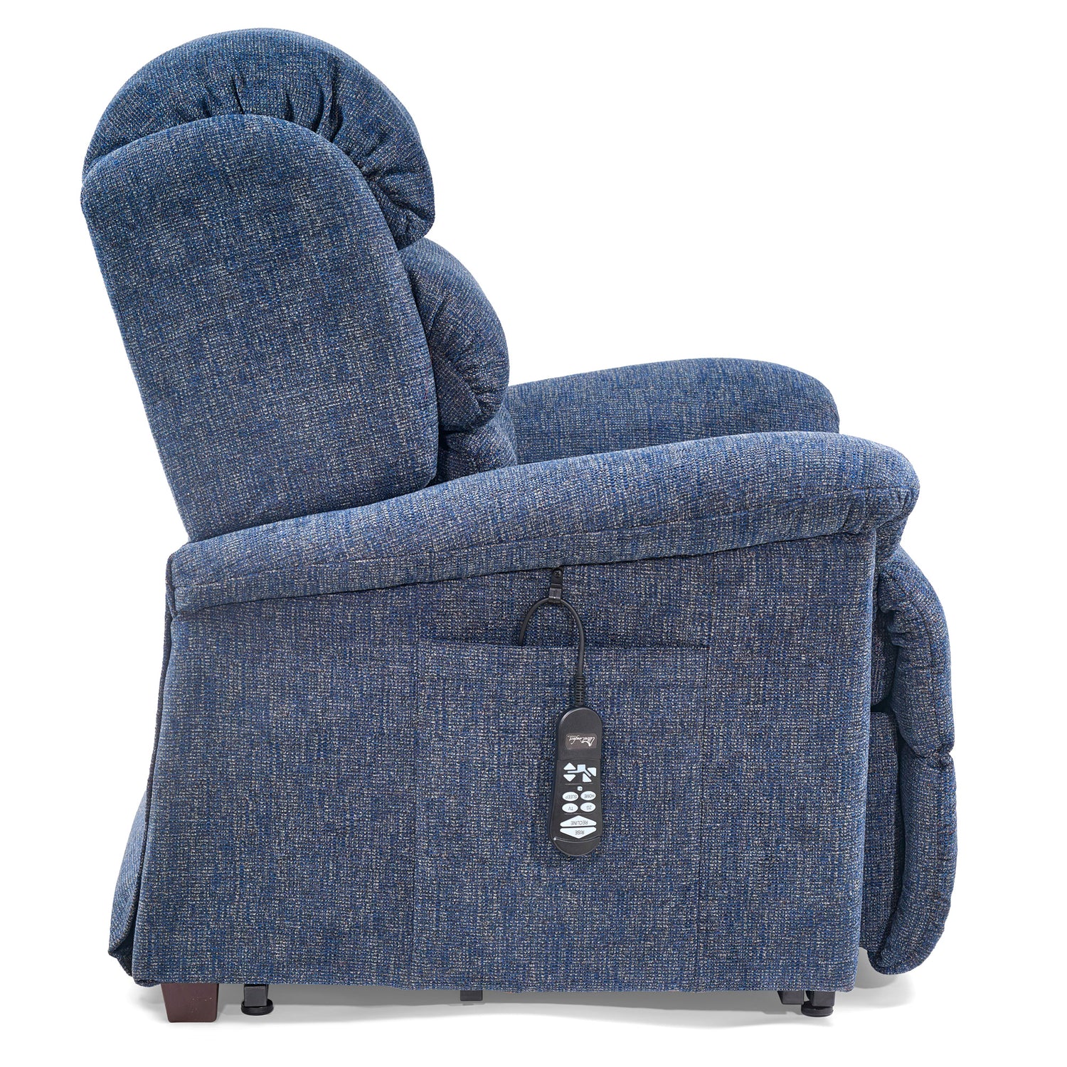 The Polaris Power Lift Chair Recliner offers a tailored pillow back for a clean, yet relaxed style while providing ideal support. Experience customized comfort with the plush arms and extra wide chaise pad that provide hours of endless comfort for every individual. This chair comes standard with a two-zone Comfort Zone positioning system, which includes a patented Stellar positioning and programmable AutoDrive hand control.