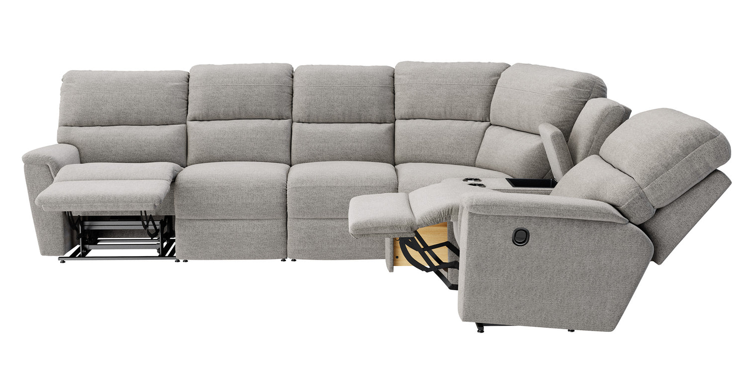 • Includes right TriPower reclining loveseat, corner wedge, TriPower armless recliner, storage console, and left TriPower recliner