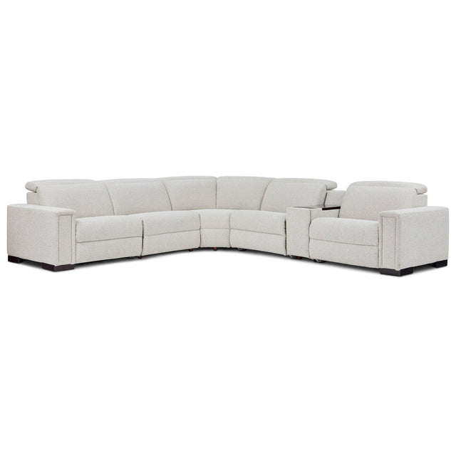 Recline and relax in style with the Armitage 6 Piece Dual Power Reclining Sectional without sacrificing comfort. This tech-forward sectional has smooth, effortless motion and zero-gravity recline with lay-flat power adjustable headrests. Store all the essentials in the flip-top console, and charge your devices with 2 USB-C ports. The console also includes 2 silver tilt-out cup holders, so everything you need is in reach. The wide-bodied look of the Armitage, along with the decorative wooden legs, seamlessly blends form and function.