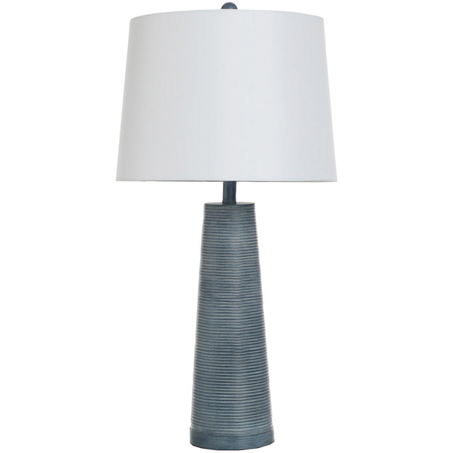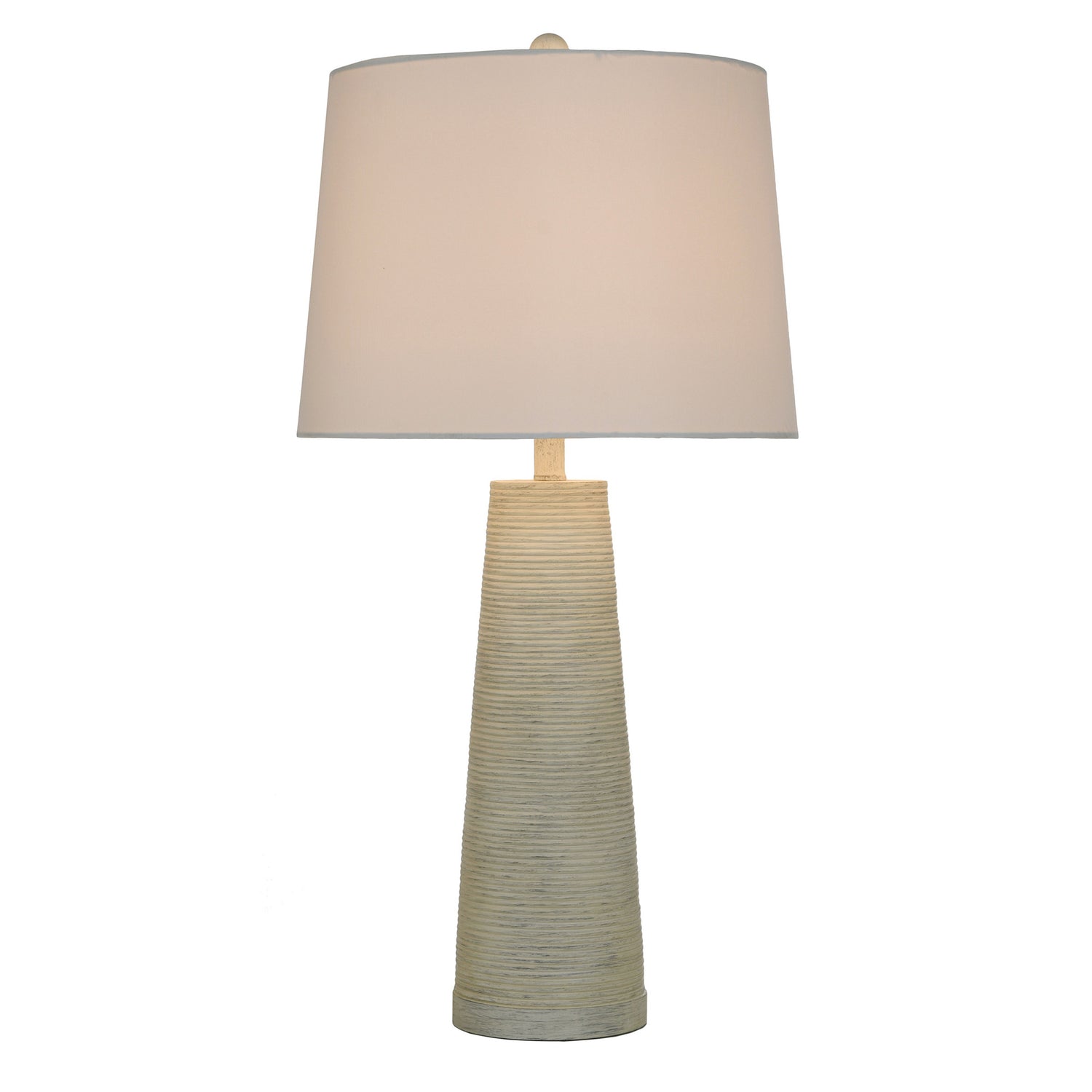 The Michel Table Lamp is sure to draw the eye as you enter a room, with a warm, inviting glow that provides light without being too harsh. The ceramic base of the Michel Lamp is textured for additional interest, and the tapered shape is elegant and fits into any space. Topped with a white drum lampshade, this piece is versatile and sophisticated.