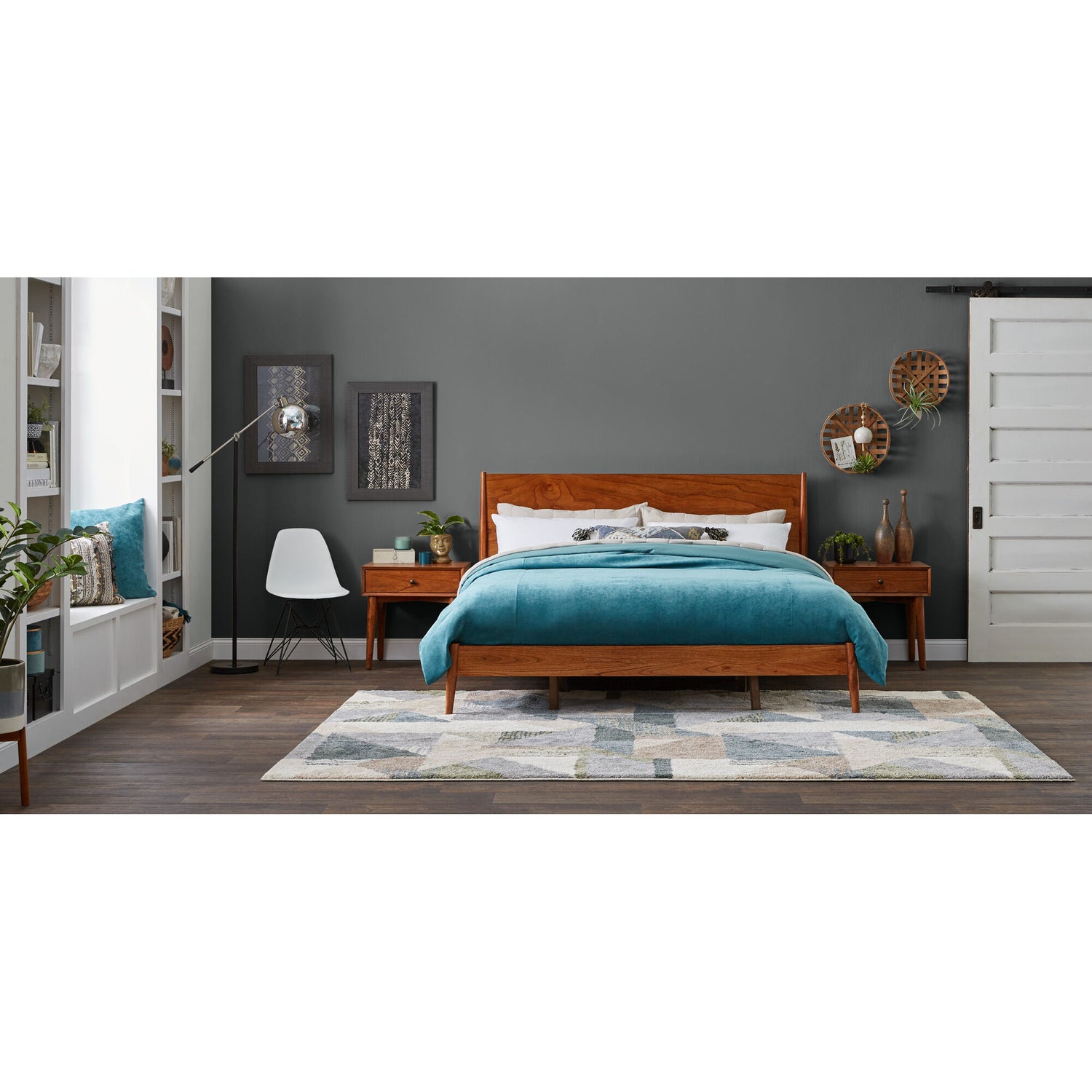 The American Modern bed has mid-Century modern design influences, but it's much more versatile than that. The beautiful woodgrain finish is the highlight of this collection, and the bed is the focal point. It has a low-rise headboard and slightly angled, tapered feet. Made of select hardwoods and veneers, this bed fits in easily with vintage to modern decorating themes, and anything in between. Change the bedding and change the look!