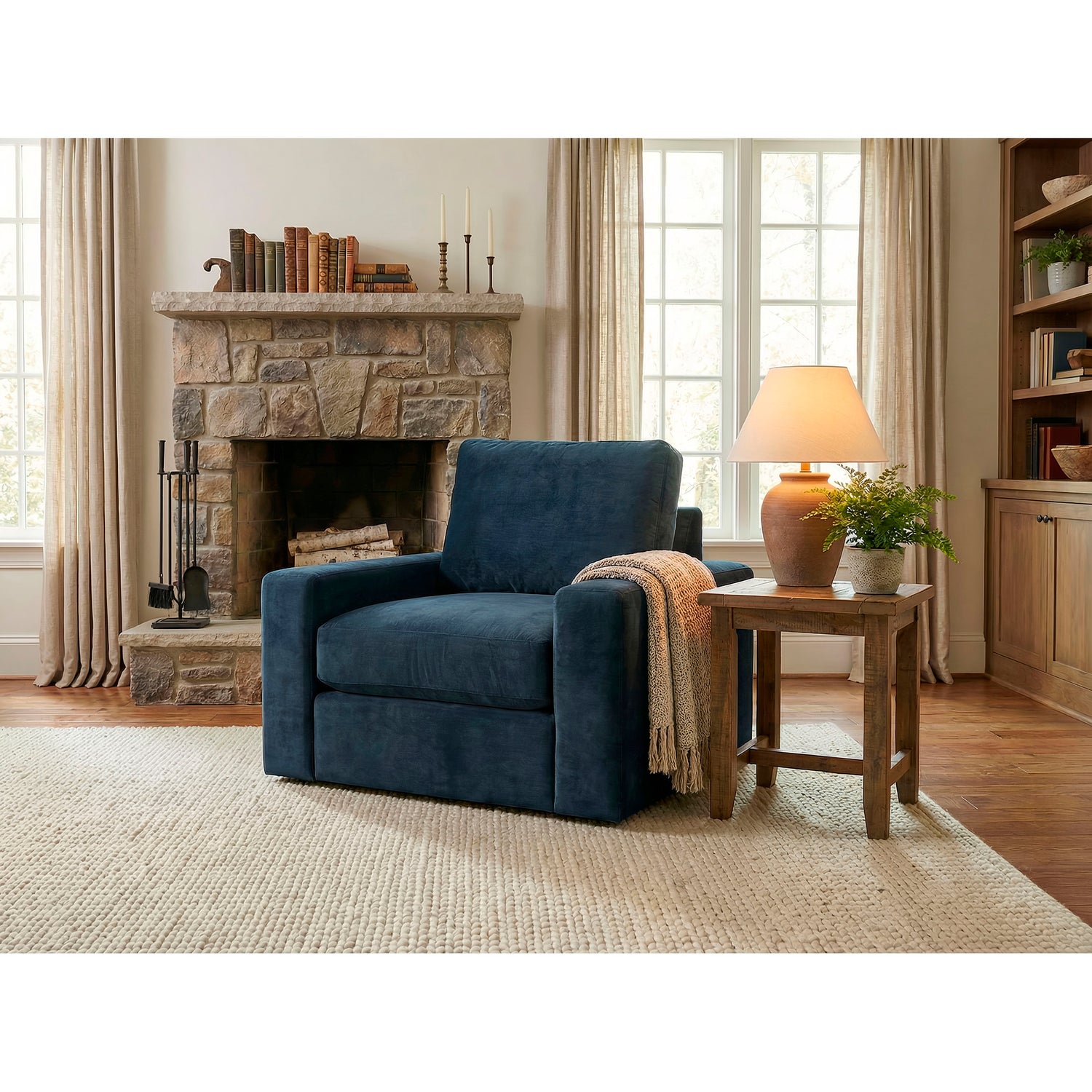 The Juno Swivel Chair by Stone & Leigh Upholstery blends bold design with unmatched comfort. Featuring a Duracoil cushions, and plush fabric upholstery, this swivel chair embodies modern luxury at its most inviting.
