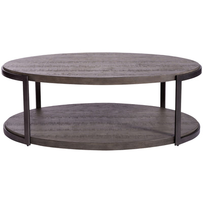Add chic style and convenient organization to your living room, home office, or den with the Modern View Oval Cocktail Table. Its clever, two-tiered design brings both style and functionality to any seating area. Set down drinks, display books and photos, and arrange your favorite décor pieces all in one place. With a dark pewter metal frame, this piece will last beautifully for many years.