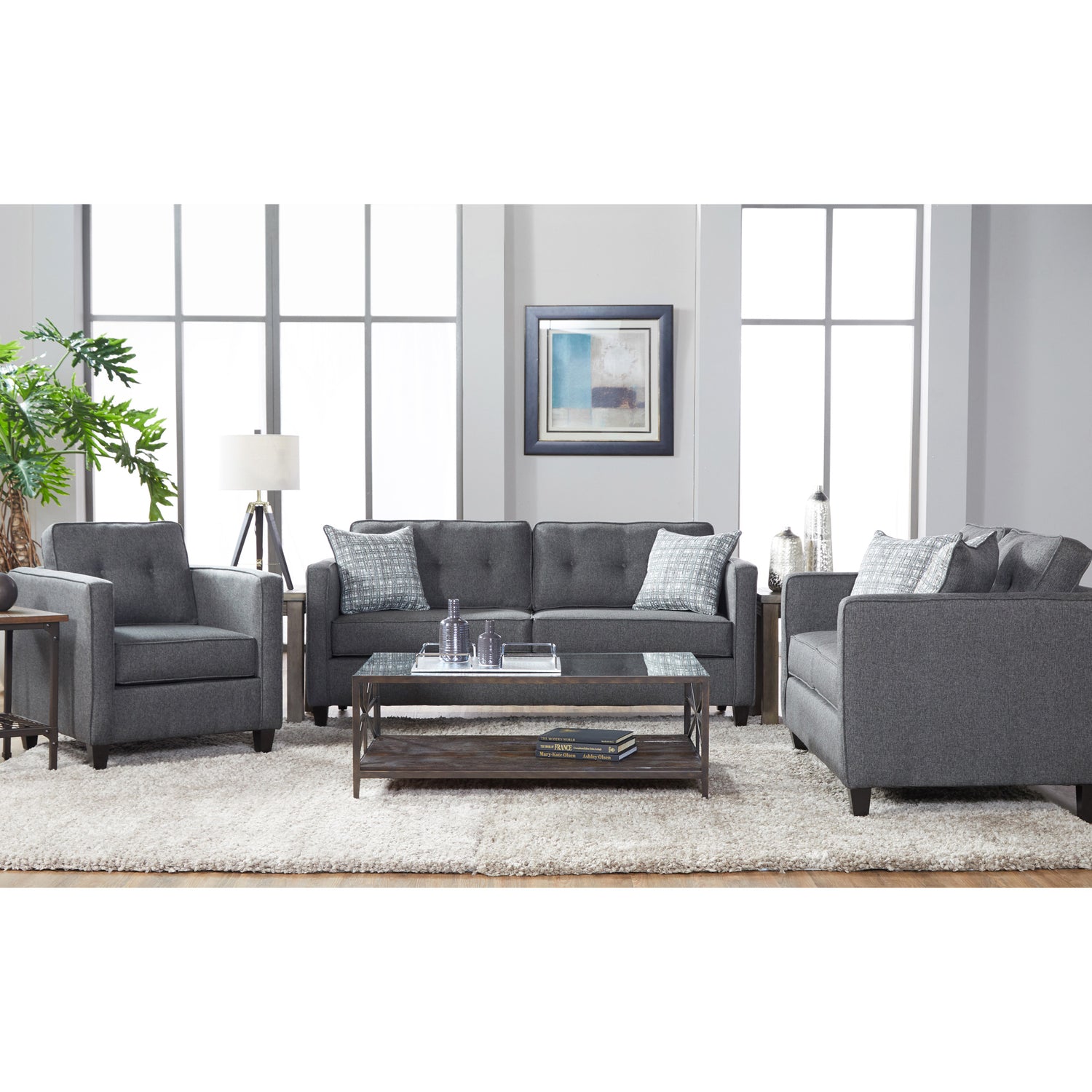 This contemporary styled sofa would look great in any room. It has reversible cushions, to keep it looking fresh, and pairs nicely with the coordinating loveseat and chair, sold separately. Using only hardwood frames, CertiPUR foam, and durable fabrics that are hand tailored to the piece, this product is manufactured with quality and value.