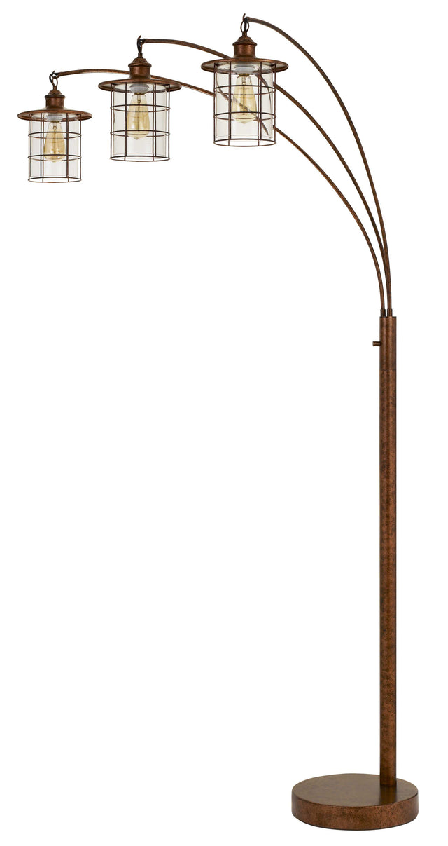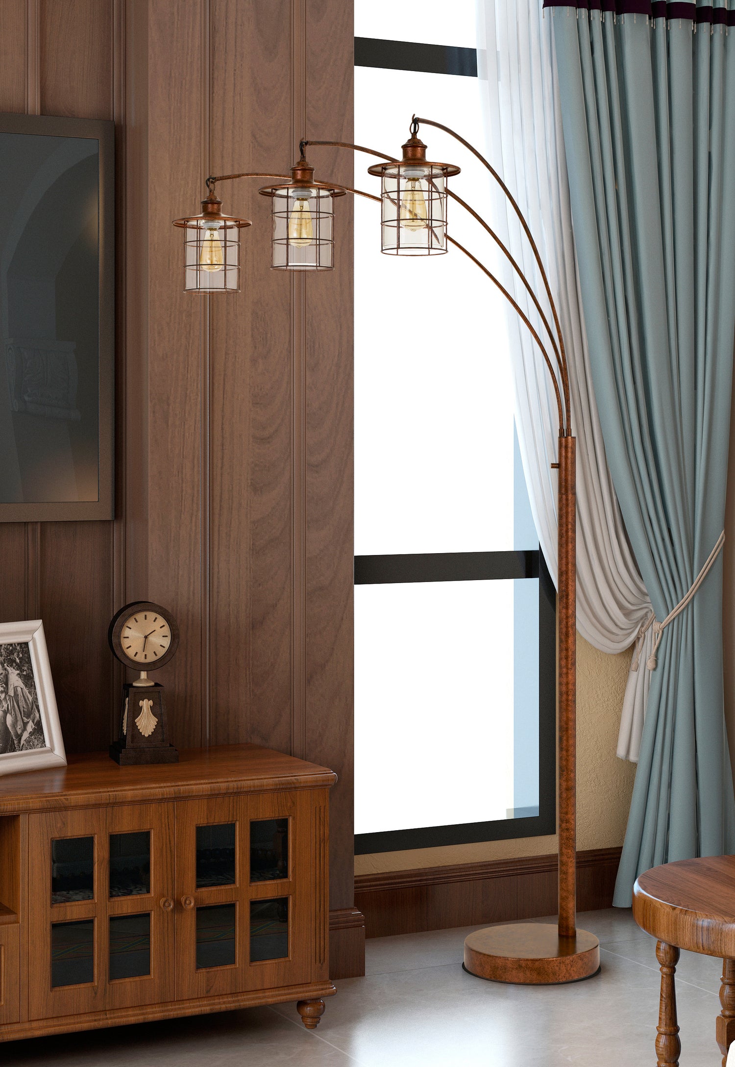 Stylish arc floor lamp with 3 metal lanterns. Looks great and offers good light.
