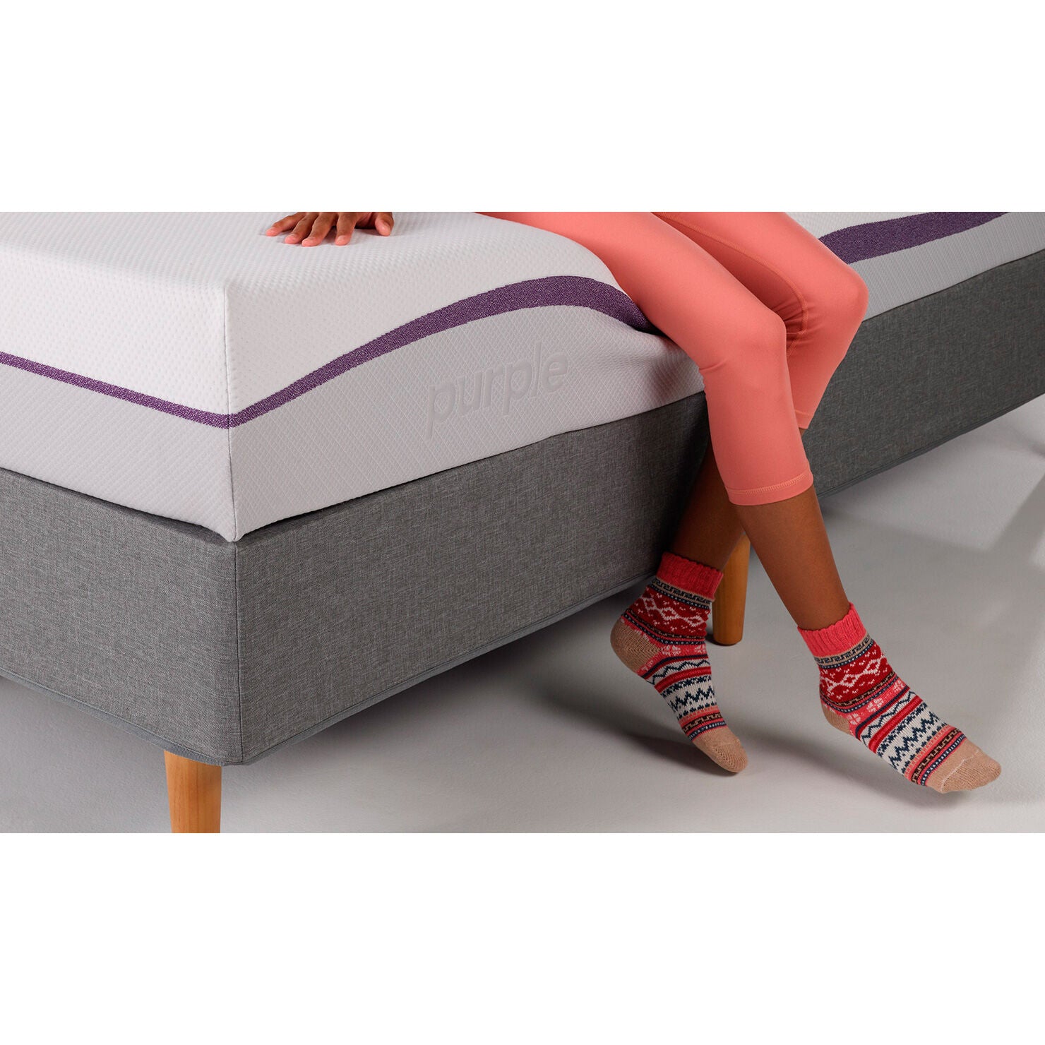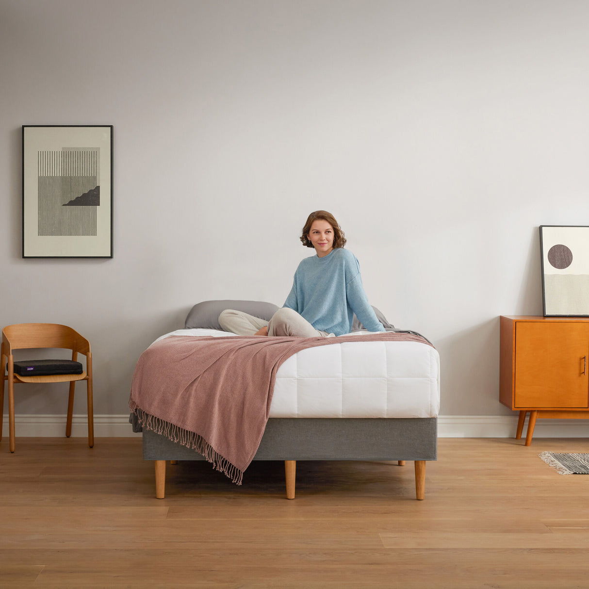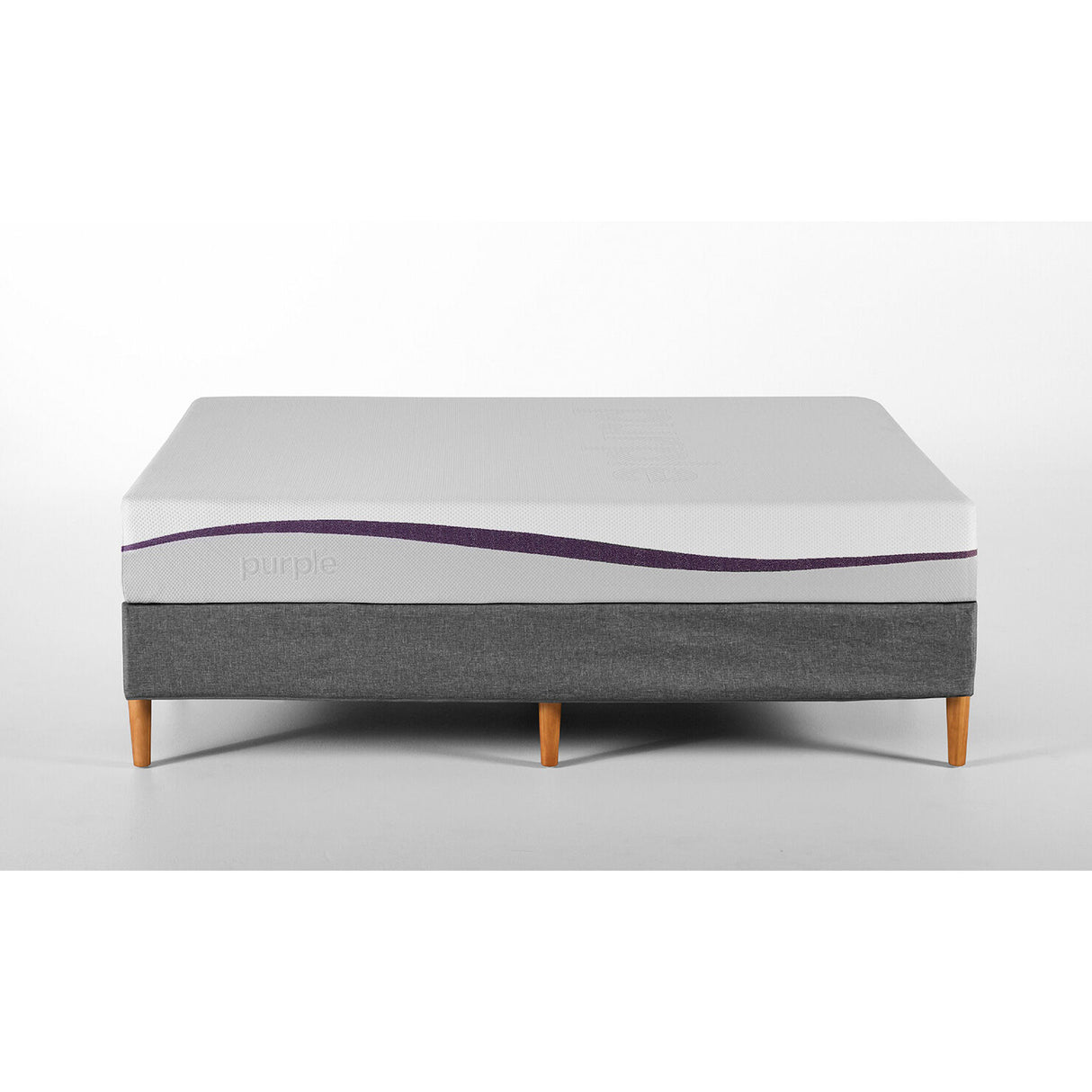 The ultimate mattress base. Design-forward grey upholstery and tapered wooden legs complement bedroom aesthetics of all kinds while an ultra-durable design ensures mattress longevity. Simple assembly makes setup a breeze. Complete the look with the addition of an optional headboard, sold separately.