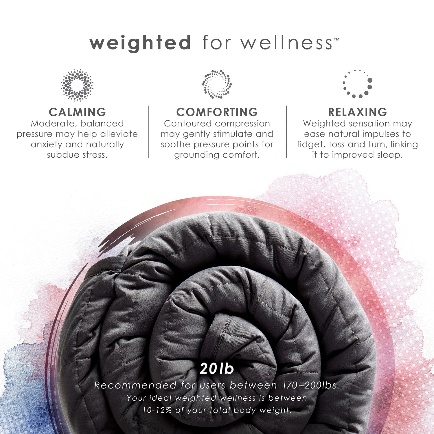 Experience weighted wellness from PureCare with a weighted sensory blanket. Once under, you feel a gentle, contoured compression that brings a sense of calm around while pressure points are softly stimulated throughout your body. Relaxation and equilibrium achieved, you can enjoy peaceful tranquility. Your ideal weighted wellness is between 10-12% of your total body weight.